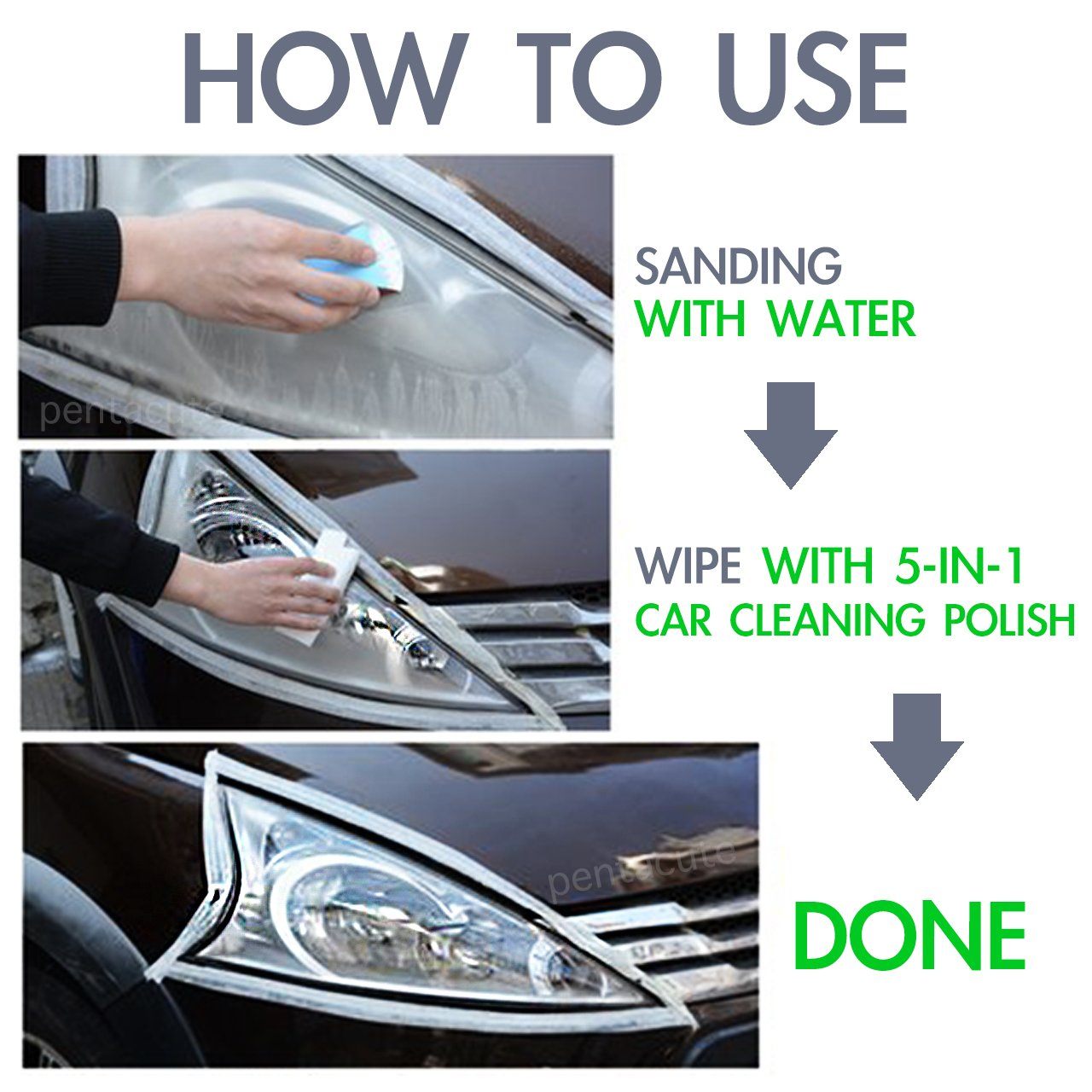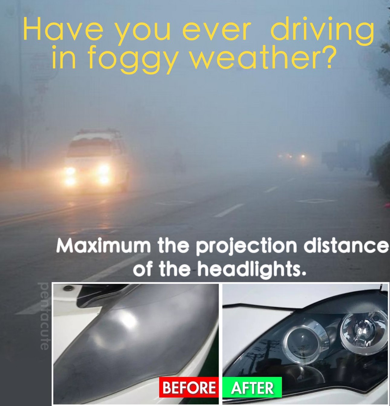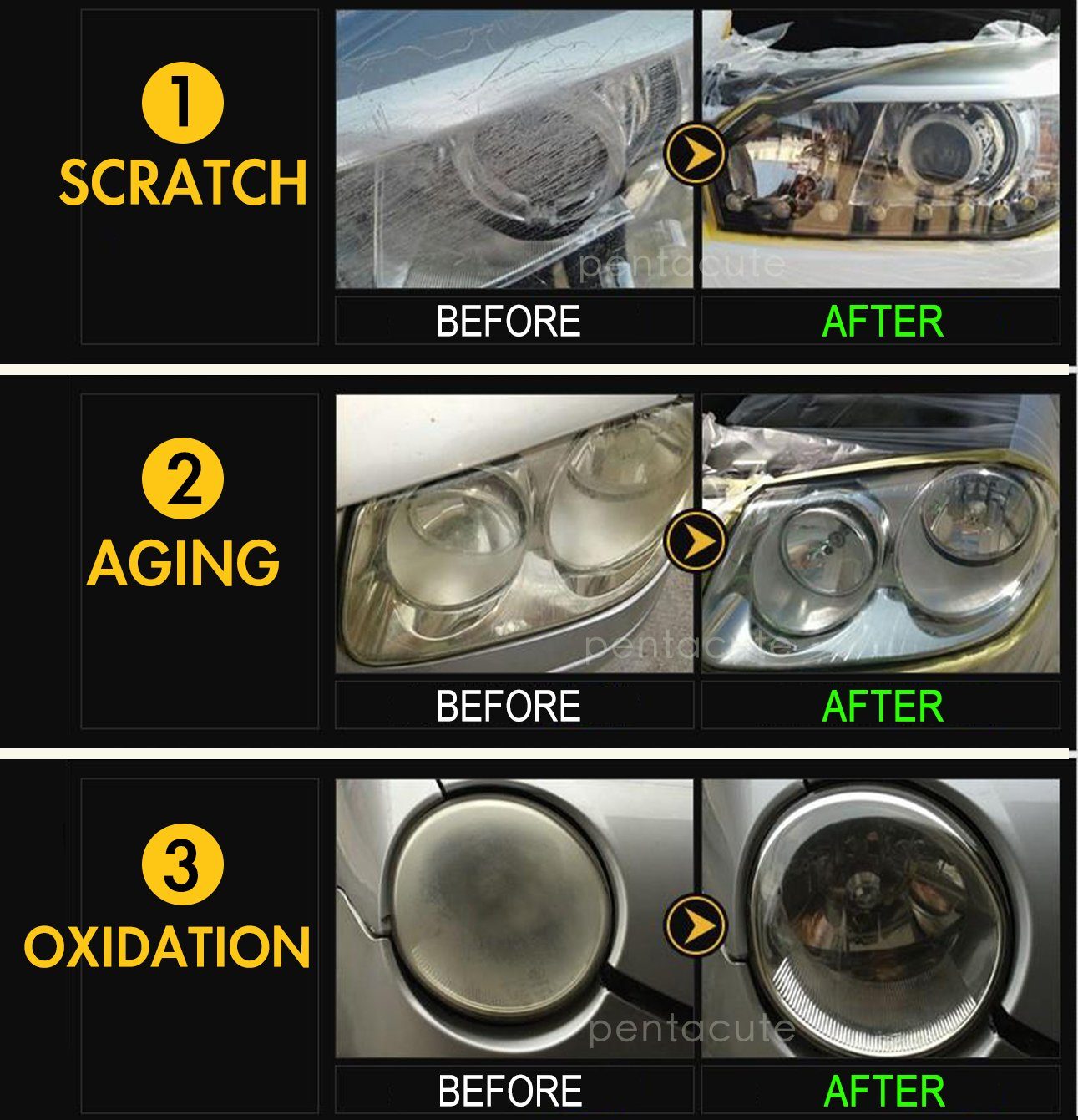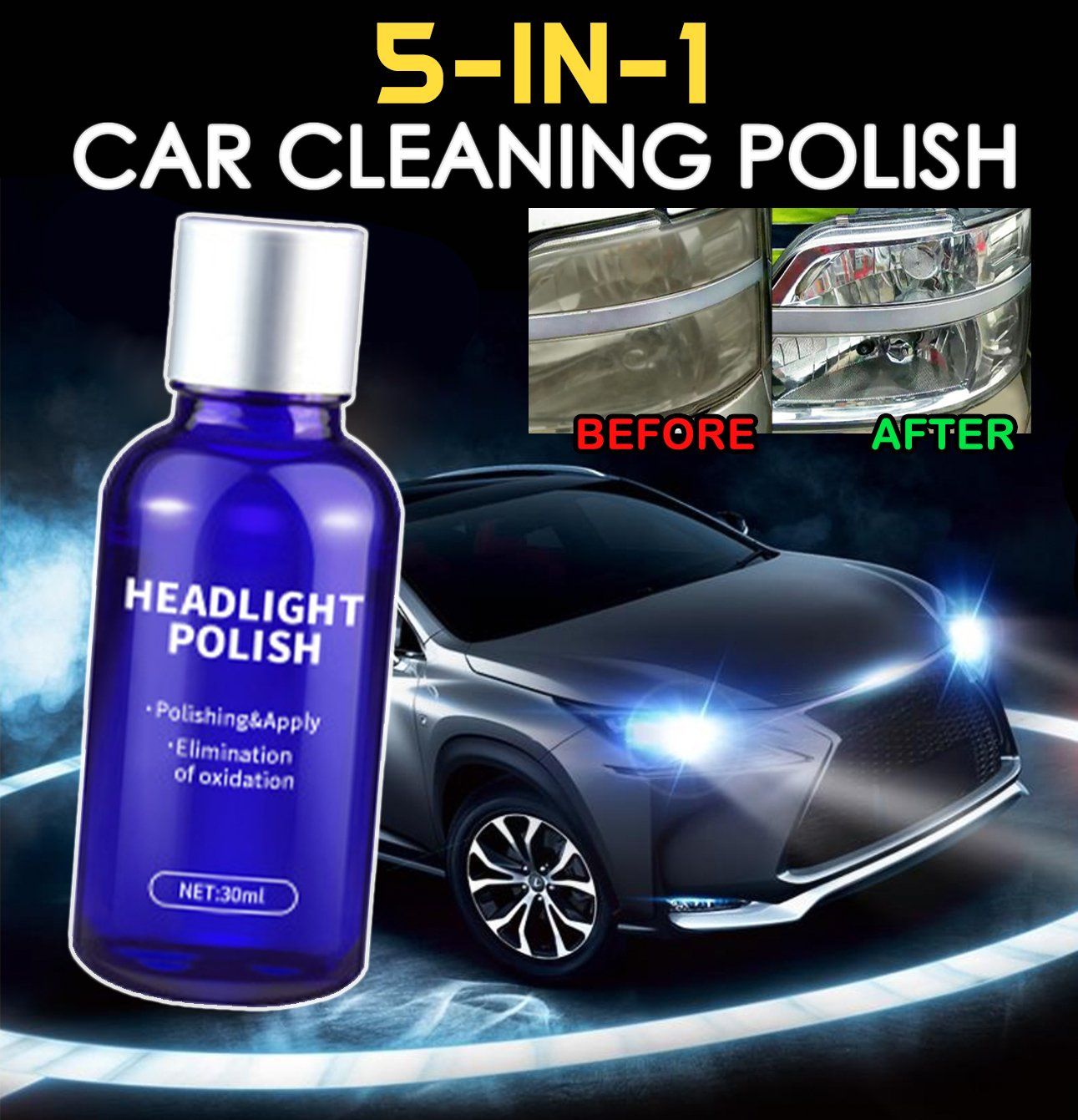 Dirty front window and headlights will seriously reduce 90% of road visibility. Clear the stains with our 5-IN-1 Car Cleaning Polish in just 30 seconds!This cleaning polish leaves a hydrophobic coating that acts as a barrier over the car surface. Effectively removes haze and corrosion on the car, protect from aging, fading, UV light, etc.