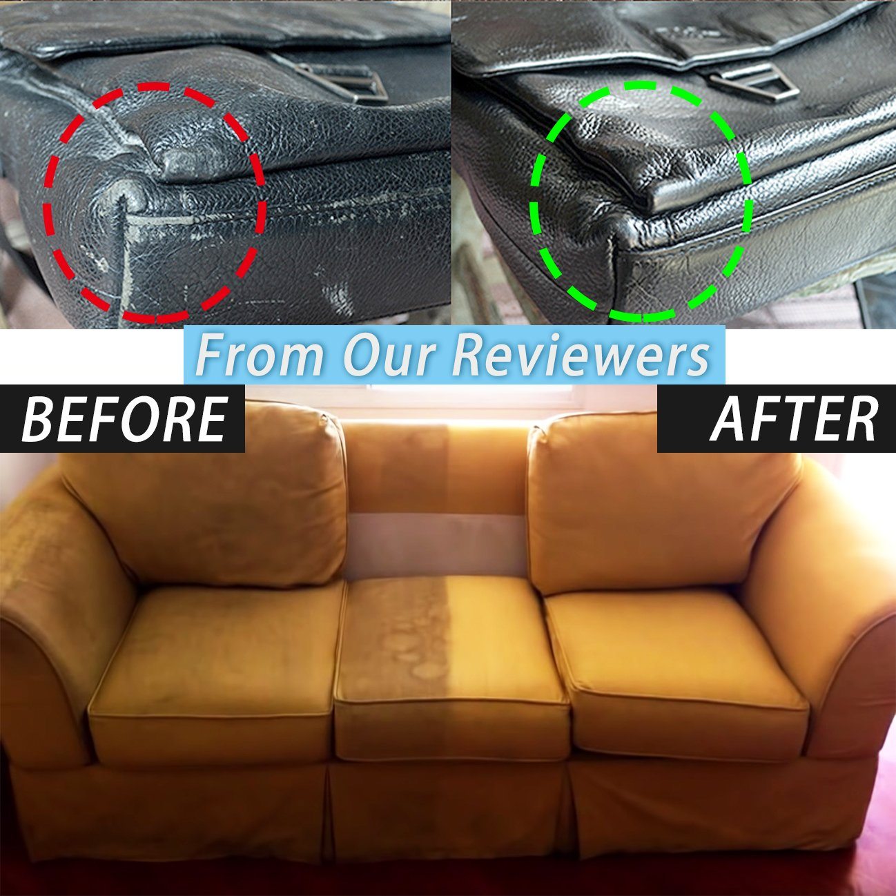 It’s a shame to throw away a piece of your worn leather furniture. This Leather Refurbishing Cleaner is a quick and low-cost solution to give a new life to every worn-out leather.Heal and restore a large area of scratched leather in minutes. Simply penetrate the cleaner into the leather with a soft cloth, refurbishing to a lustrous shine last for 6 months! No pungent smell, safe to use with allergic rhinitis families.